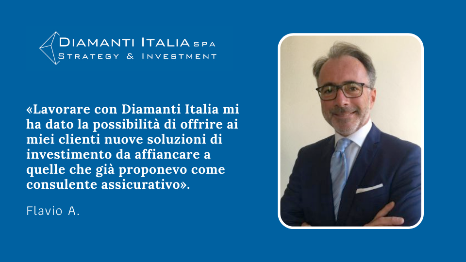 Diamanti Italia opera sul territorio attraverso una fitta rete di consulenti patrimoniali altamente specializzati. Il nostro punto di forza risiede nella relazione diretta che il cliente instaura con il consulente, pronto ad assisterlo in ogni sua necessità, costruendo un’offerta patrimoniale personalizzata. Abbiamo incontrato Flavio A., Libero Professionista e Consulente Assicurativo, che ci ha raccontato la